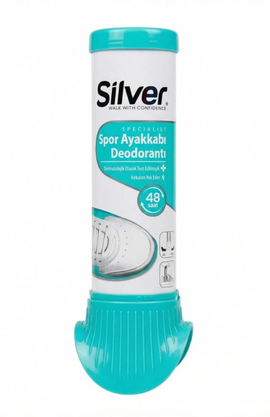 Silver Spor Ayakkabı Deodorantı, ayaklarınızın gün boyu ferah kalmasını sağlayan özel formülüyle spor ayakkabılarınız için hijyenik bir çözüm sunar.