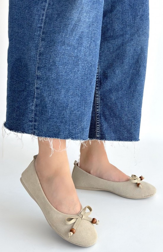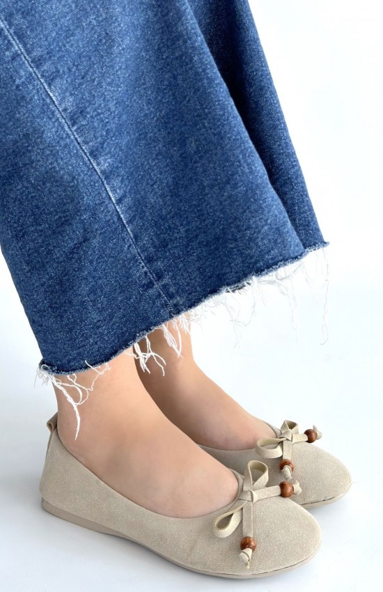 Cear Bej Deri Tozu Süet Babet Ayakkabı