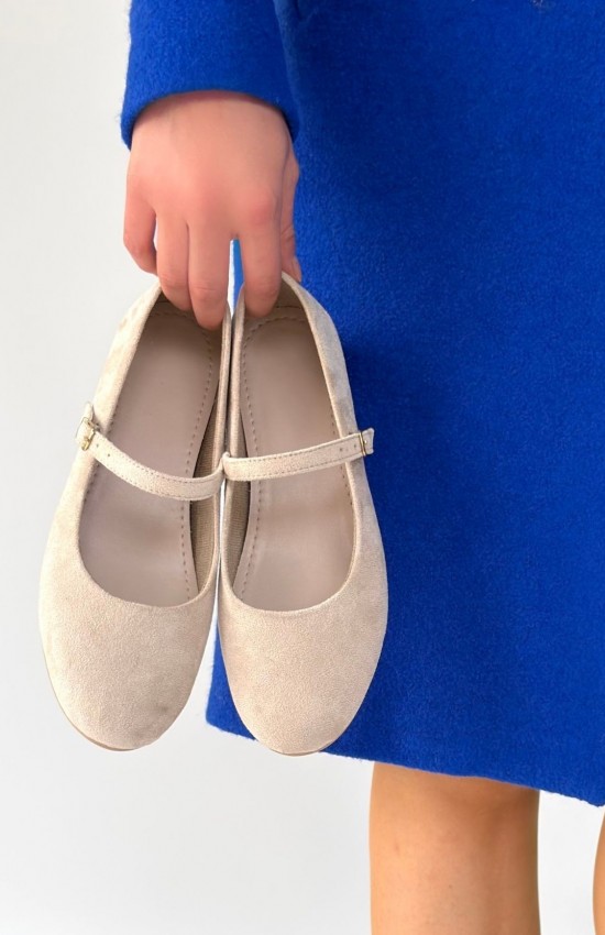 Lossa Bej Süet Kemerli Babet Ayakkabı
