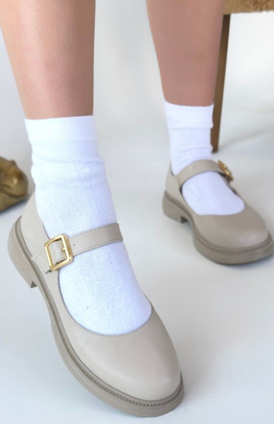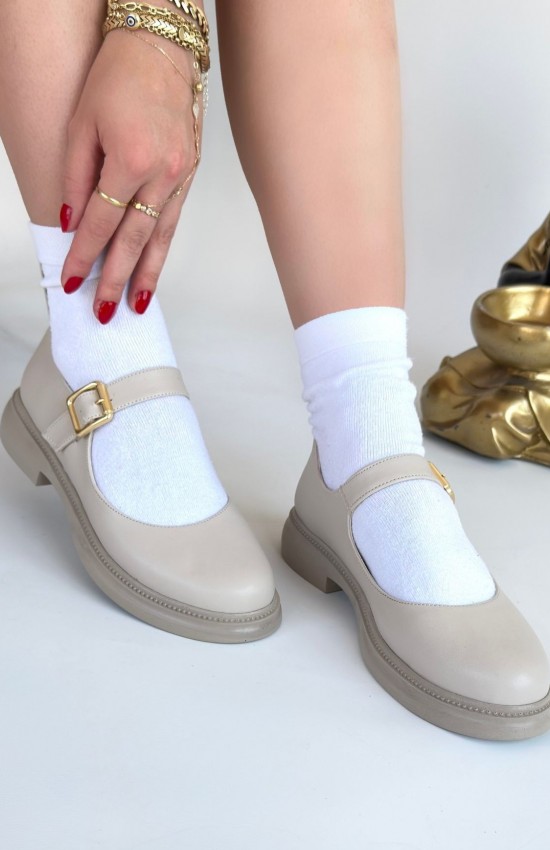 Yokox Bej Cilt Oxford Ayakkabı