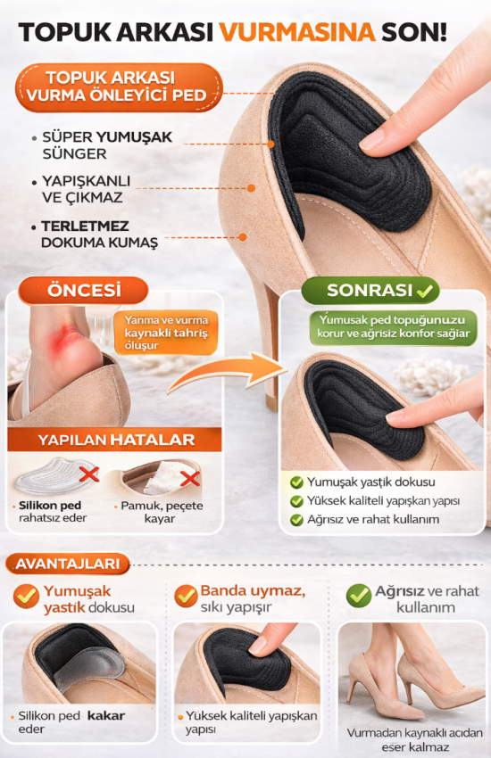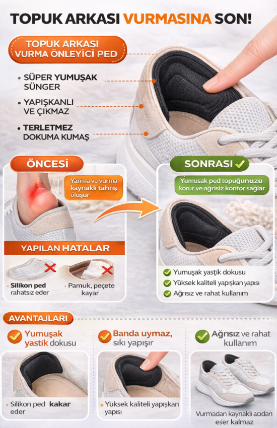 Ayakkabı Vurma Önleyici Topuk Arkası Ped | Yapışkanlı Siyah Bez Ped (1 Çift)
