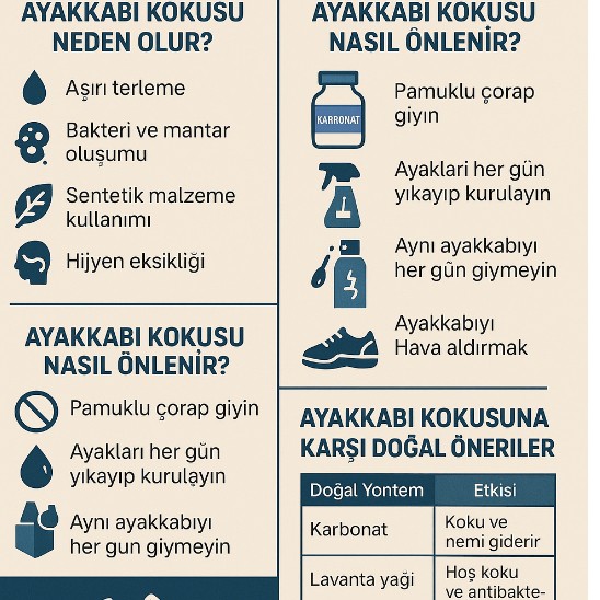 Ayakkabı kokusunun başlıca nedenleri şunlardır: