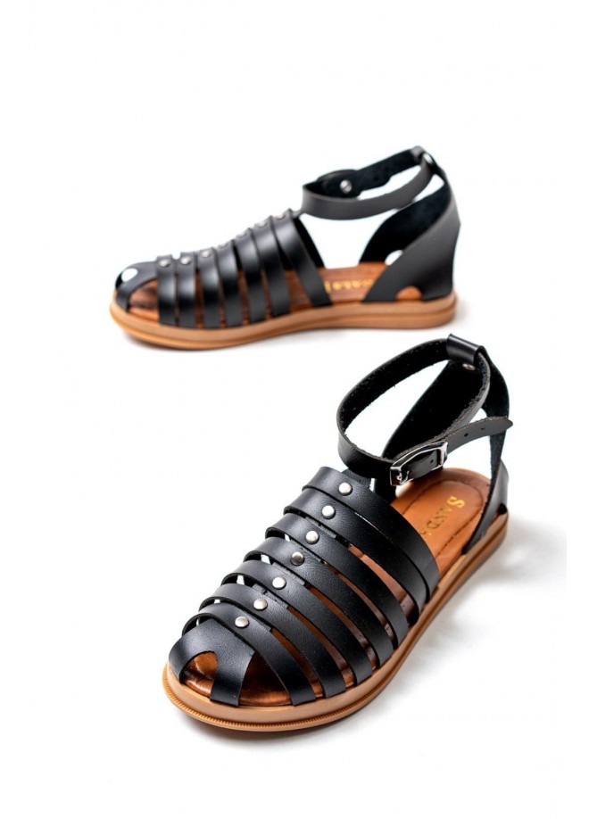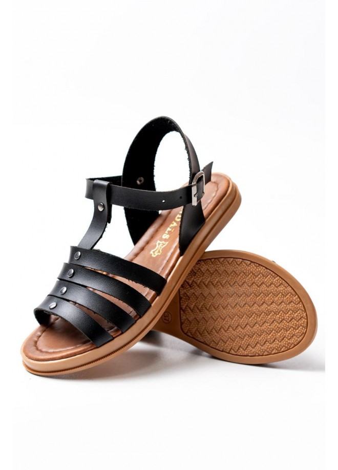 Düz Taban Deri Sandalet: Günlük kullanım için konfor sağlar.