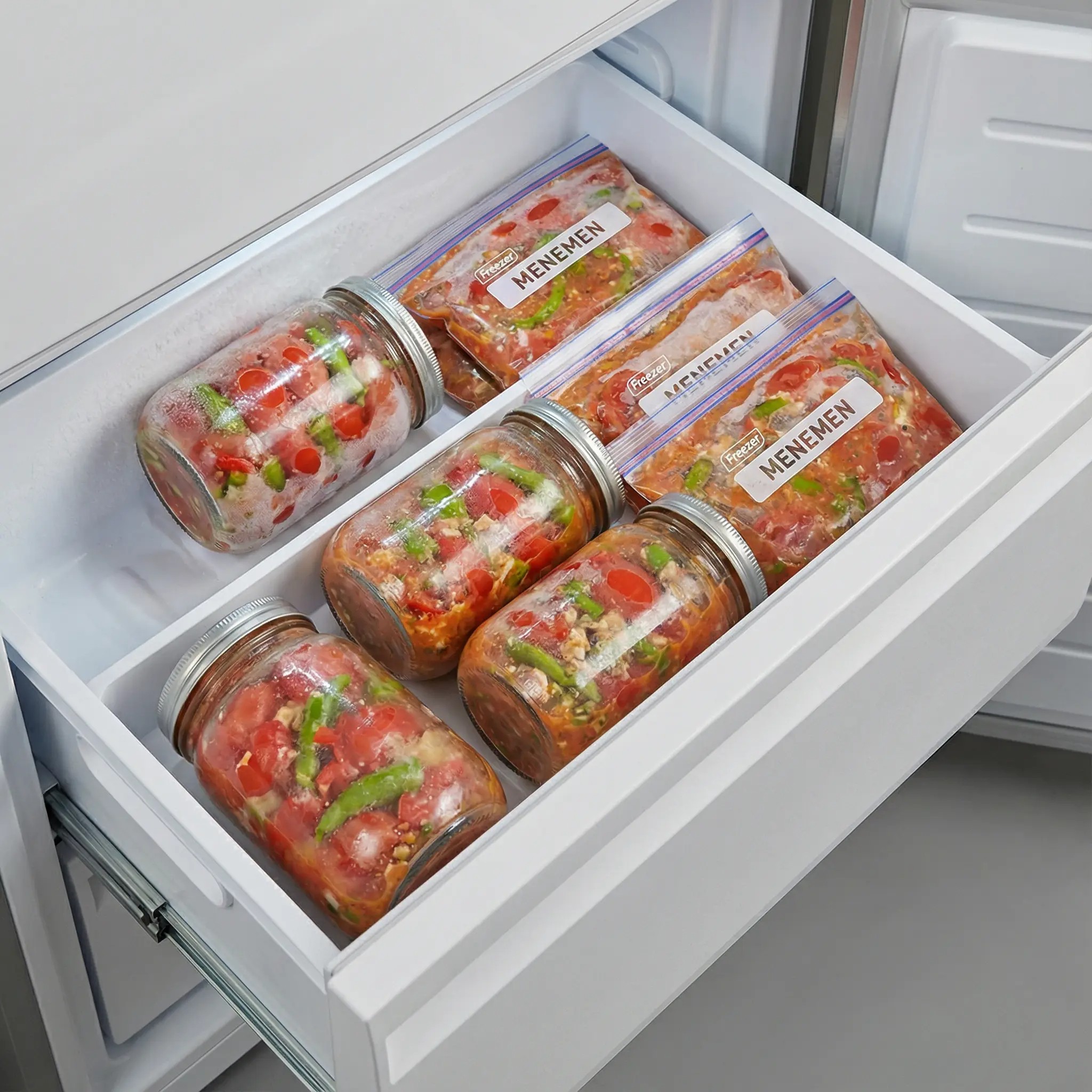 Poşette kışlık menemen, derin dondurucuda saklamak isteyenler için ideal bir yöntemdir.