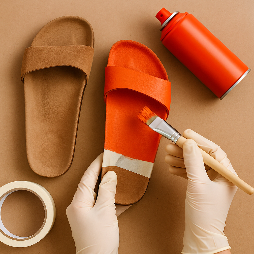 Eva ve plastik terlik için: Yüzeye tutunabilen çok amaçlı sprey boyalar uygundur.