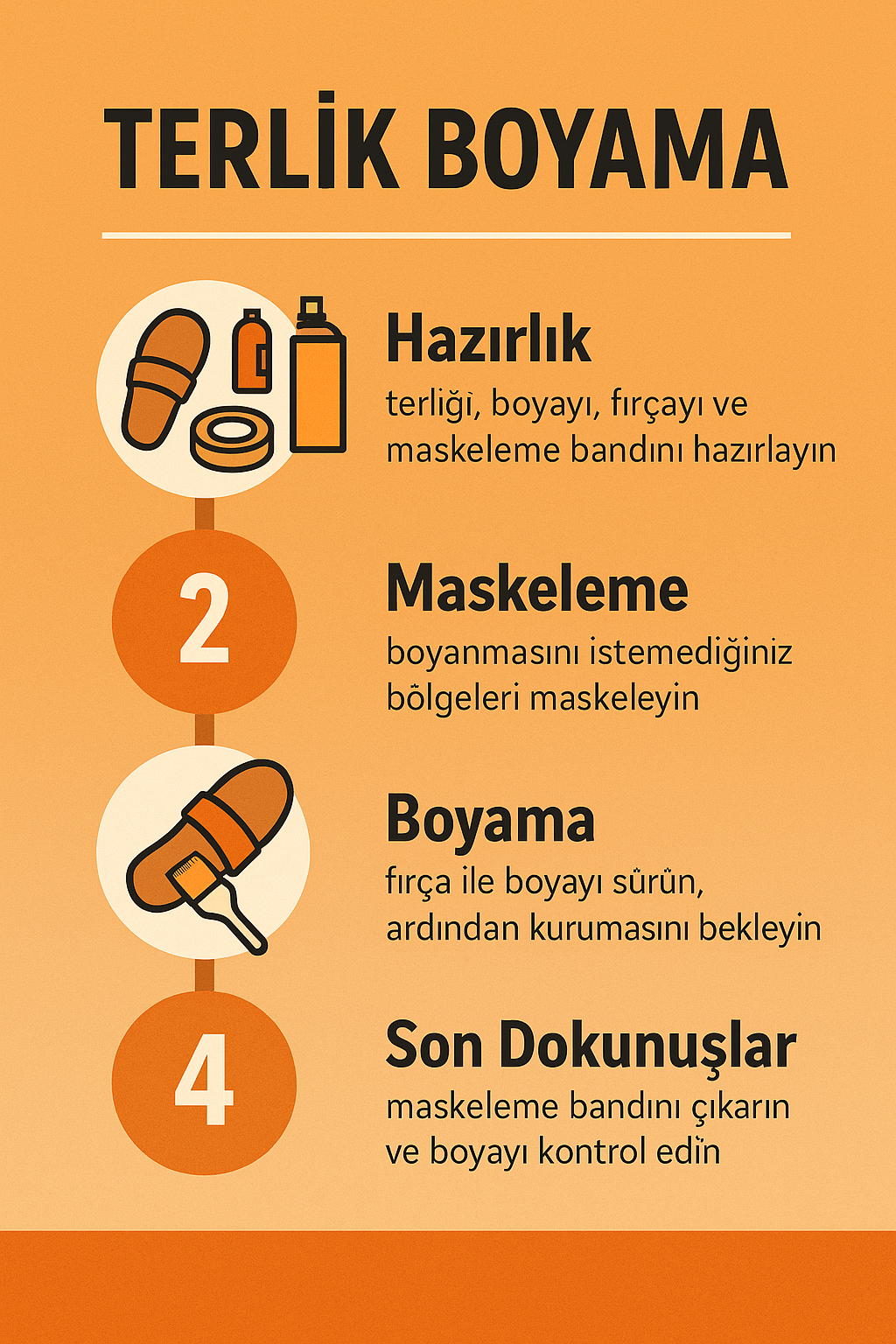 Boyama sonrası terliklerinizi daha uzun ömürlü kullanmak için bakım ürünlerine ihtiyaç duyarsanız, sitemizdeki terlik bakım spreyleri, tabanlıklar ve ortopedik destek ürünleri tam size göre!
