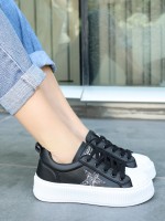 Piata Siyah Cilt Beyaz Tabanlı Bağcıklı Spor Ayakkabı
