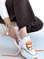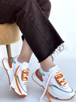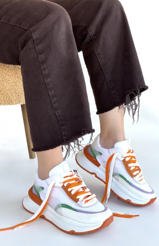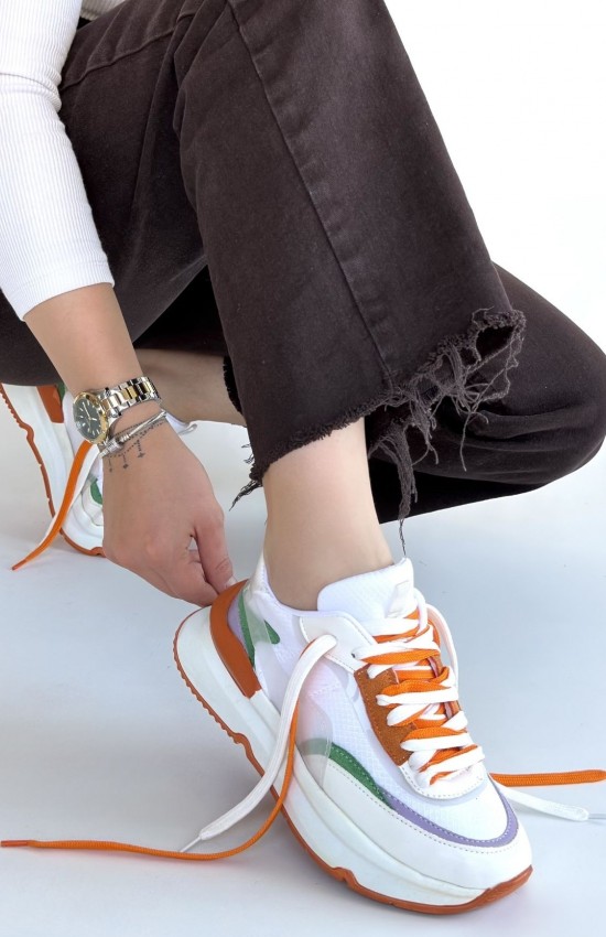 Aleh Beyaz Cilt Turuncu Detaylı Çift Bağcıklı Spor Ayakkabı