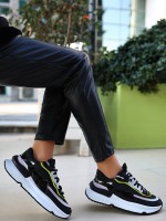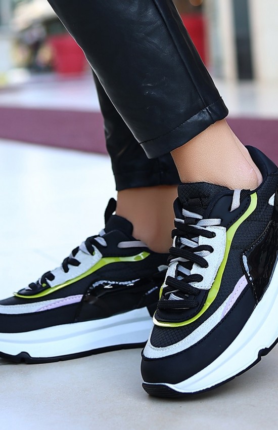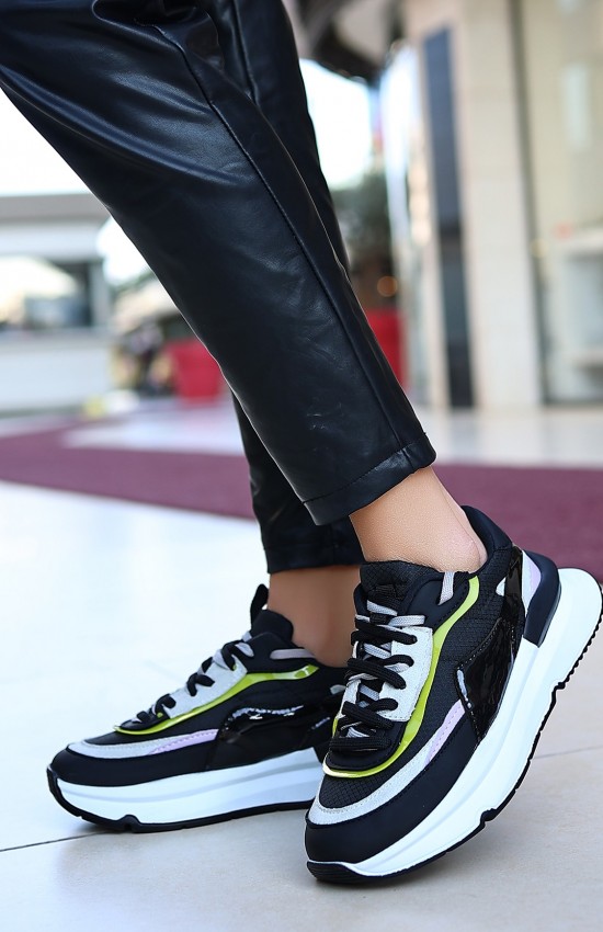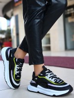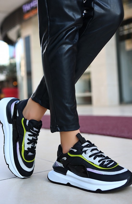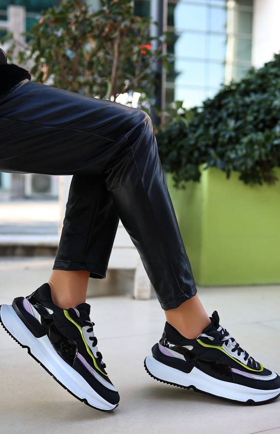 Aleh Siyah Cilt Lila Detaylı Spor Ayakkabı