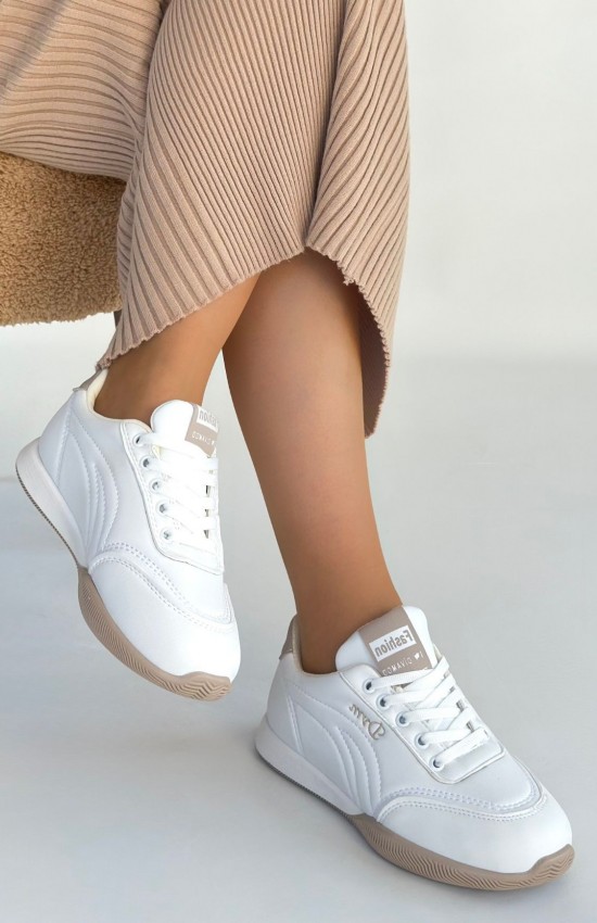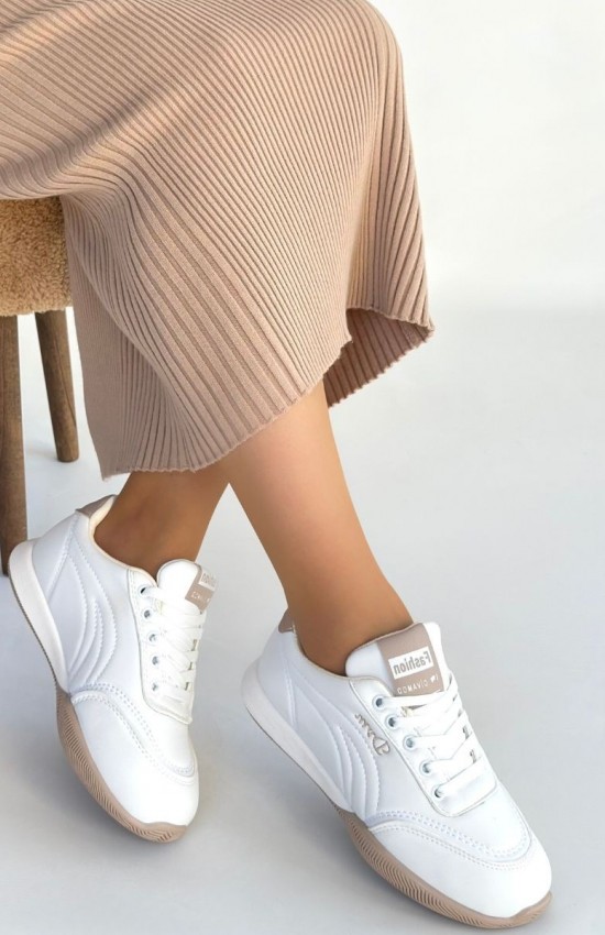 Tawen Beyaz Cilt Bağcıklı Spor Ayakkabı
