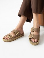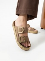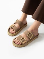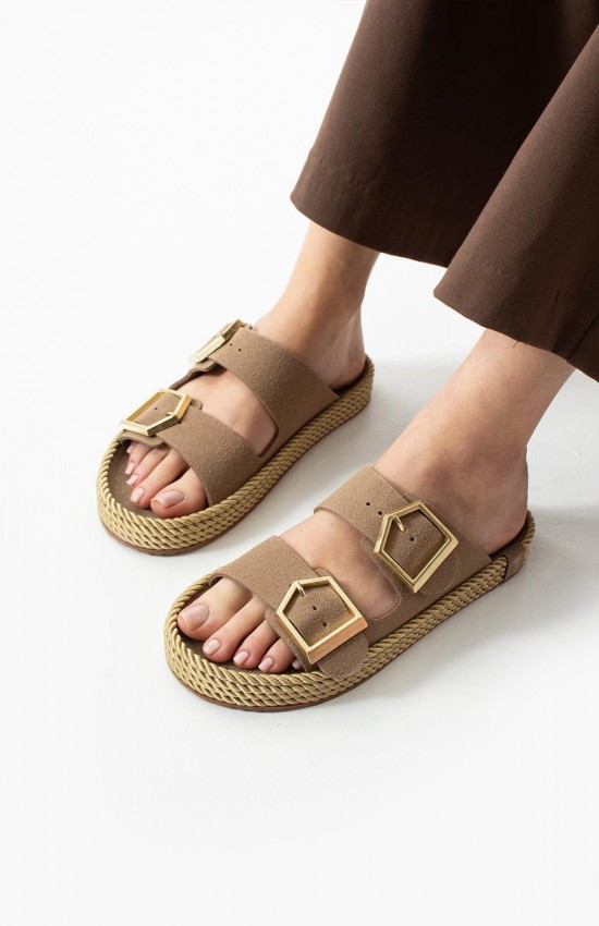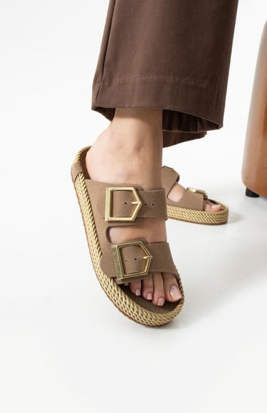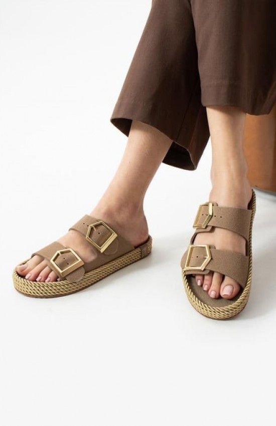 Loera Vizon Nubuk Çift Tokalı Terlik