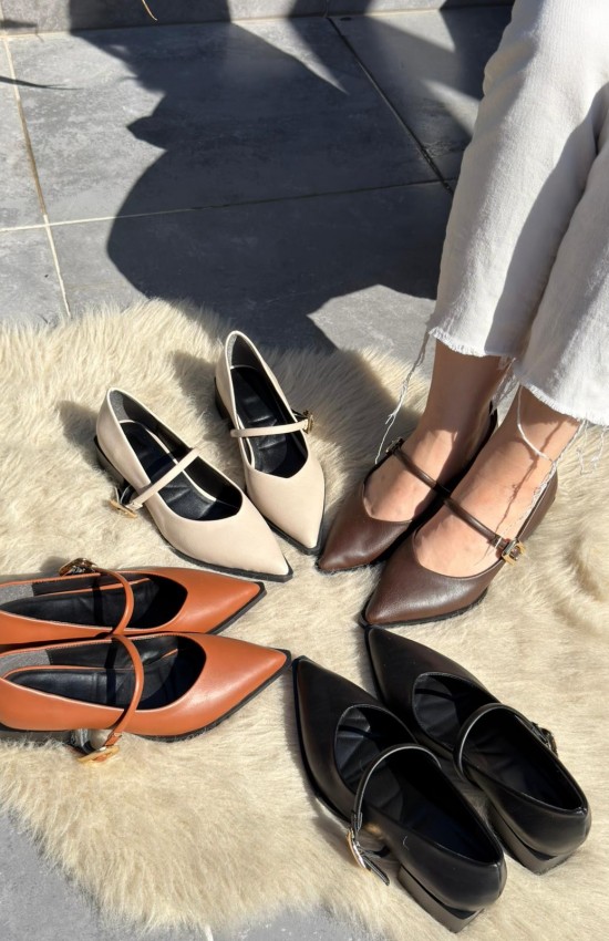 Galye Siyah Cilt Topuklu Ayakkabı