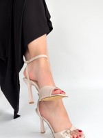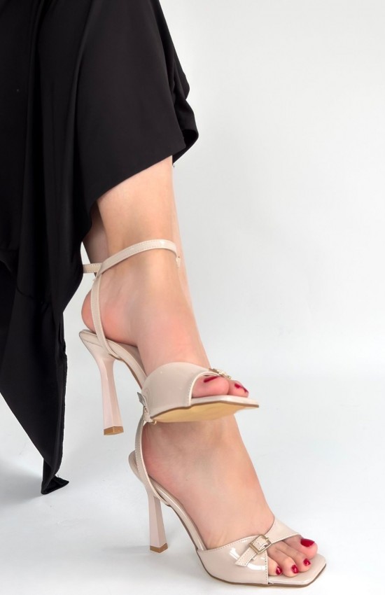 Hoste Bej Rugan Topuklu Bilekten Kemerli Ayakkabı