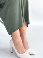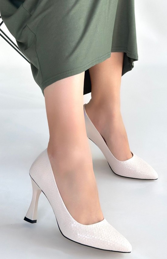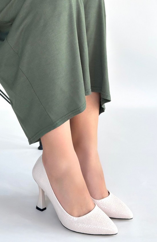 Merio Bej Baskılı Rugan Topuklu Ayakkabı