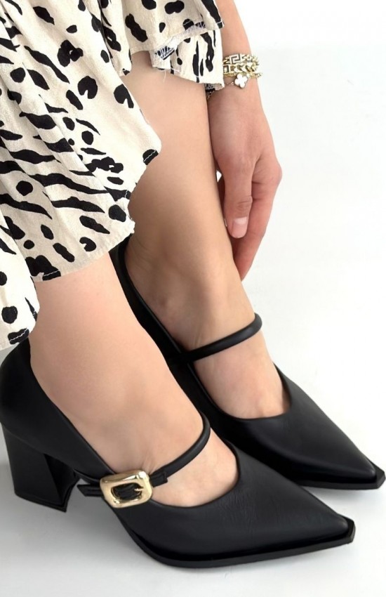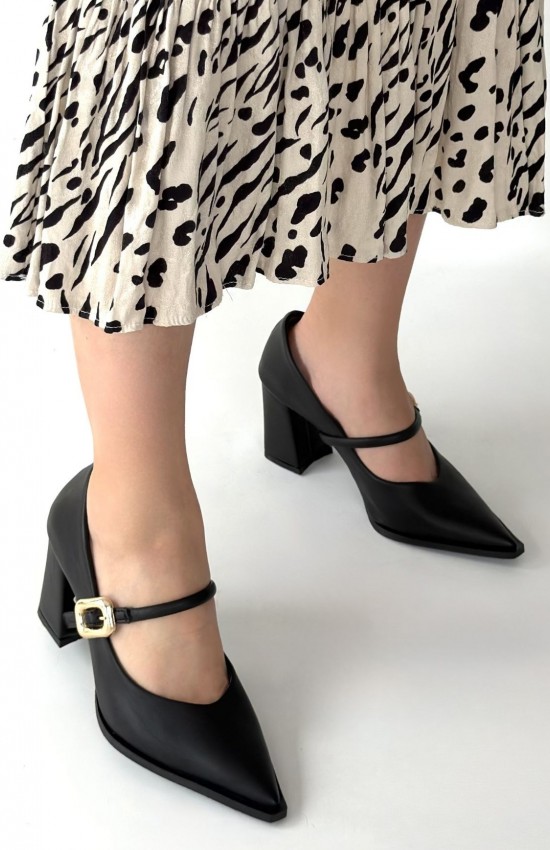 Nıvra Siyah Cilt Topuklu Ayakkabı